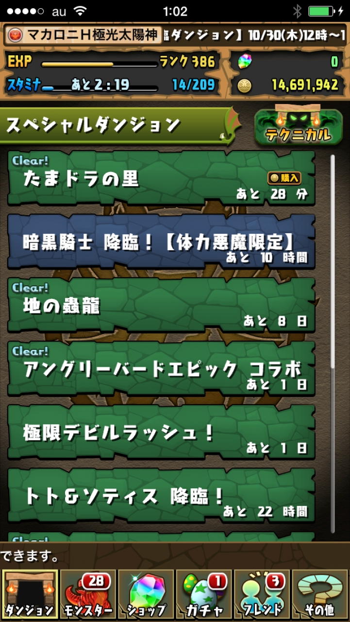 覚醒させたいモンスターが大分増えたのでタマどらの里に行ってきましたが、やっぱ石の減りがシャレにならない。